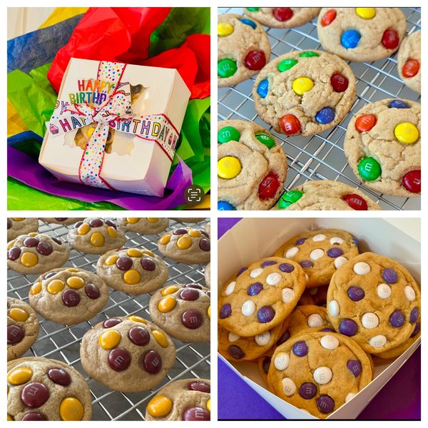 This cookie-only bundle includes 24 homemade M&M cookies, baked fresh and customized with your choice of M&M colors—school spirit, birthday themes, or any fun palette you choose. Perfect for celebrating special moments or simply spreading joy with friends. It's a sweet, shareable treat that’s made to brighten anyone’s day.